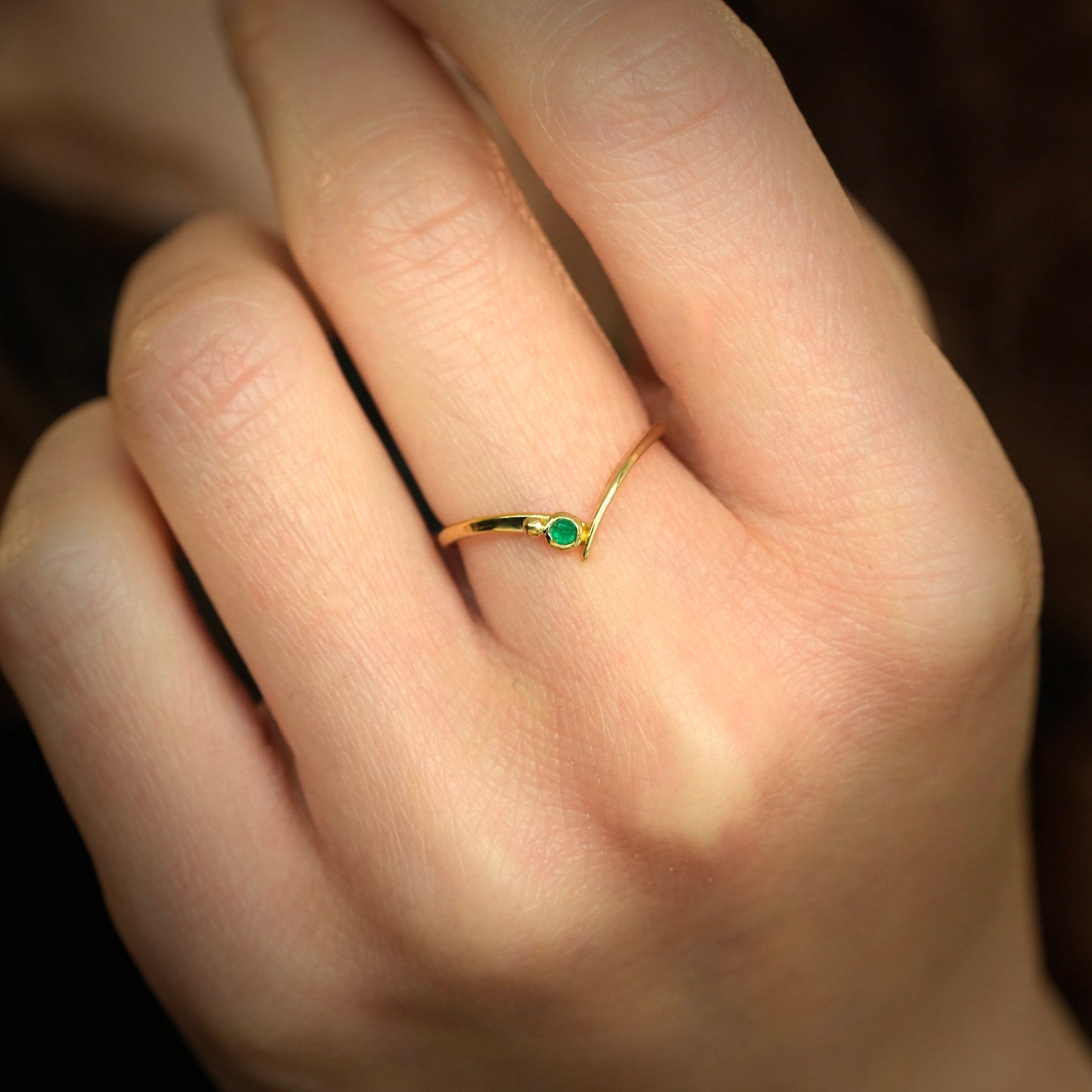 Emerald Chevron Ring // Round Emerald Ring // Emerald Wedding Band // Yellow Gold Emerald Ring // Alternative Unique Wedding Ring // Gift for Her