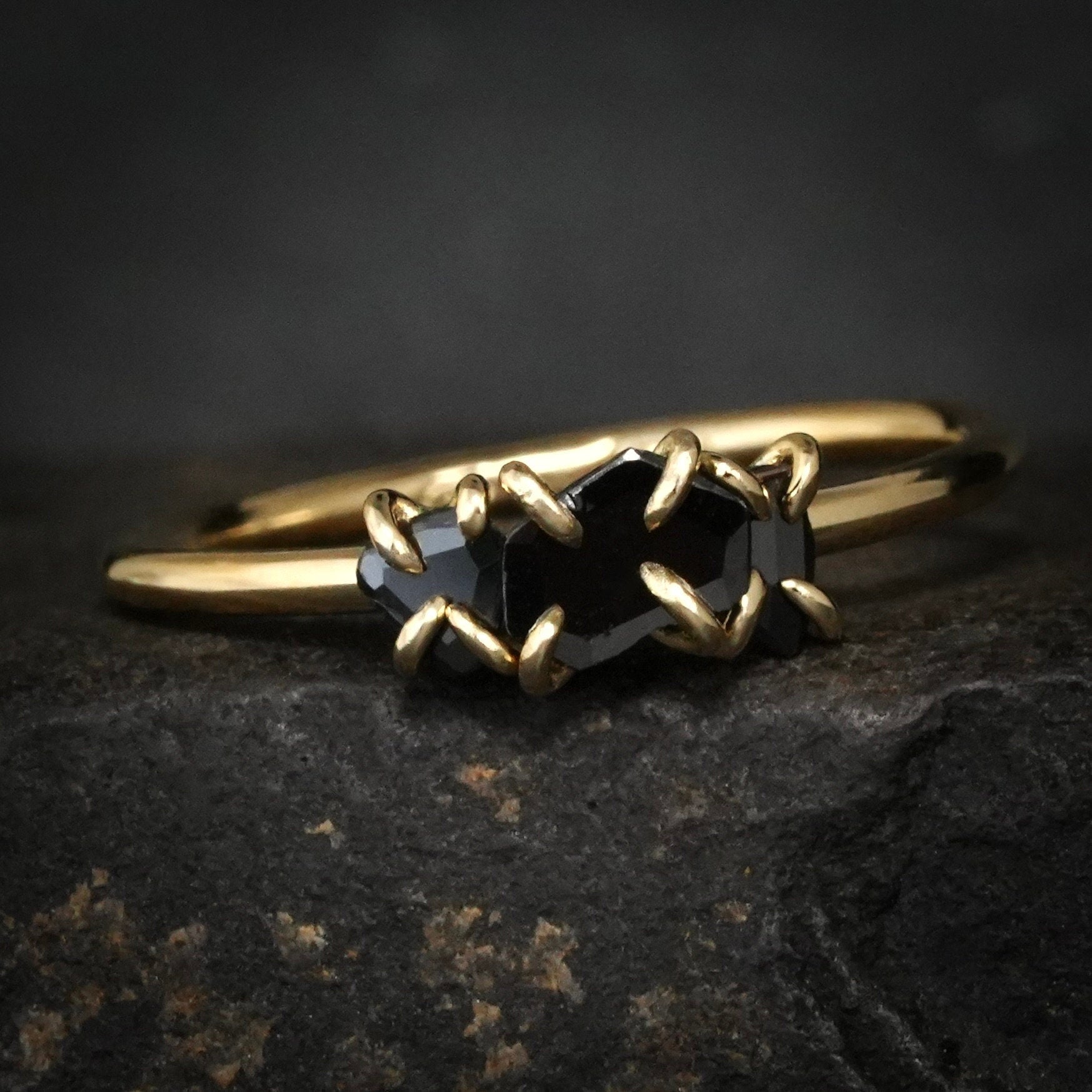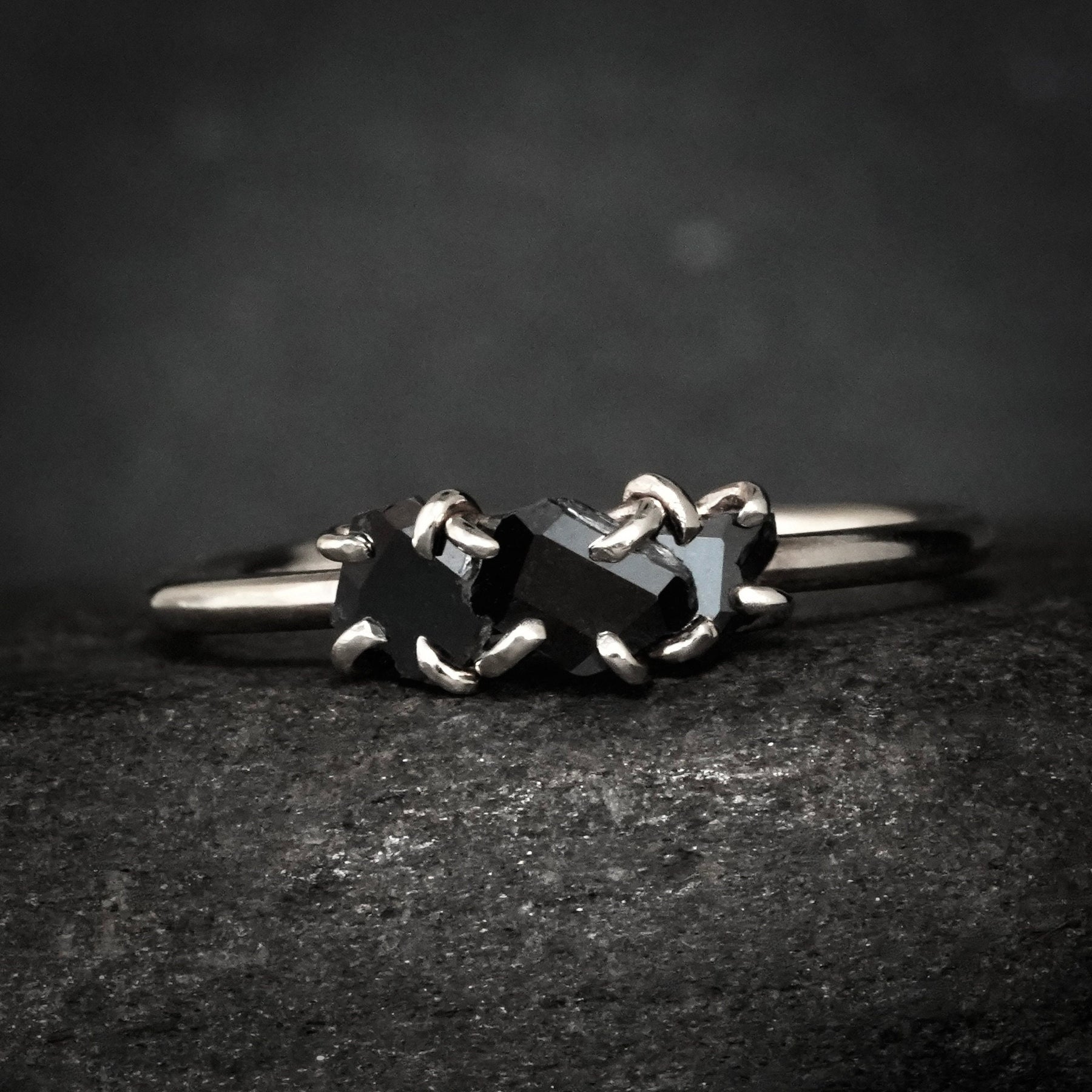 Black Diamond Ring // Random Cut Black Diamond Engagement Ring // 3 Diamond Ring // Non Traditional Engagement Ring // Alternative Diamond Jewellery