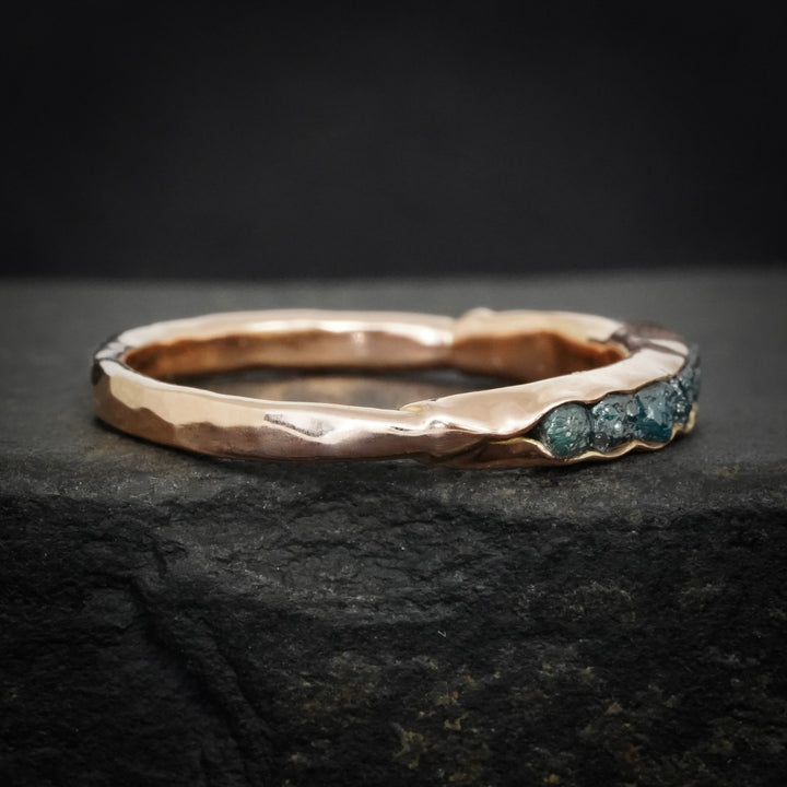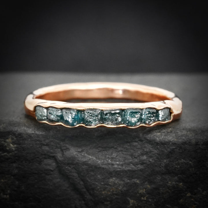 Raw Blue Diamond Band Ring // Rustic Organic Unique Alternative Blue Gemstone Raw Rough Uncut Cube Diamond Wedding Band Ring // April Birthstone