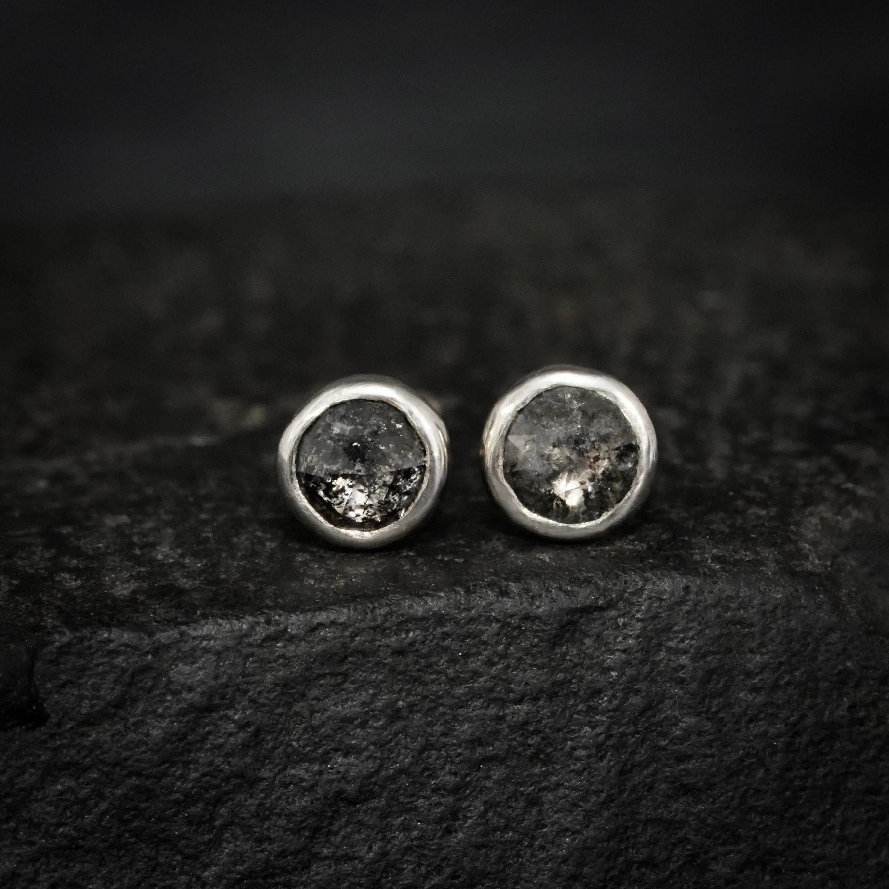 3mm Tiny Rose Cut Round Salt and Pepper Diamond Studs // Diamond Stud Earrings // Genuine Diamond Earrings // Unique Natural Grey Diamond Earrings