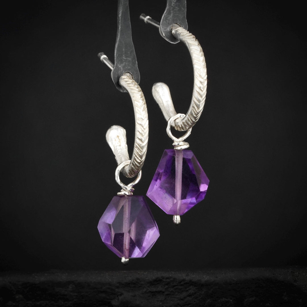 Amethyst Hoop Earrings // Unique Fancy Cut Amethyst Organic Sterling Silver Hoop Earrings // Amethyst Hoops // Amethyst Earrings // Gift for Her