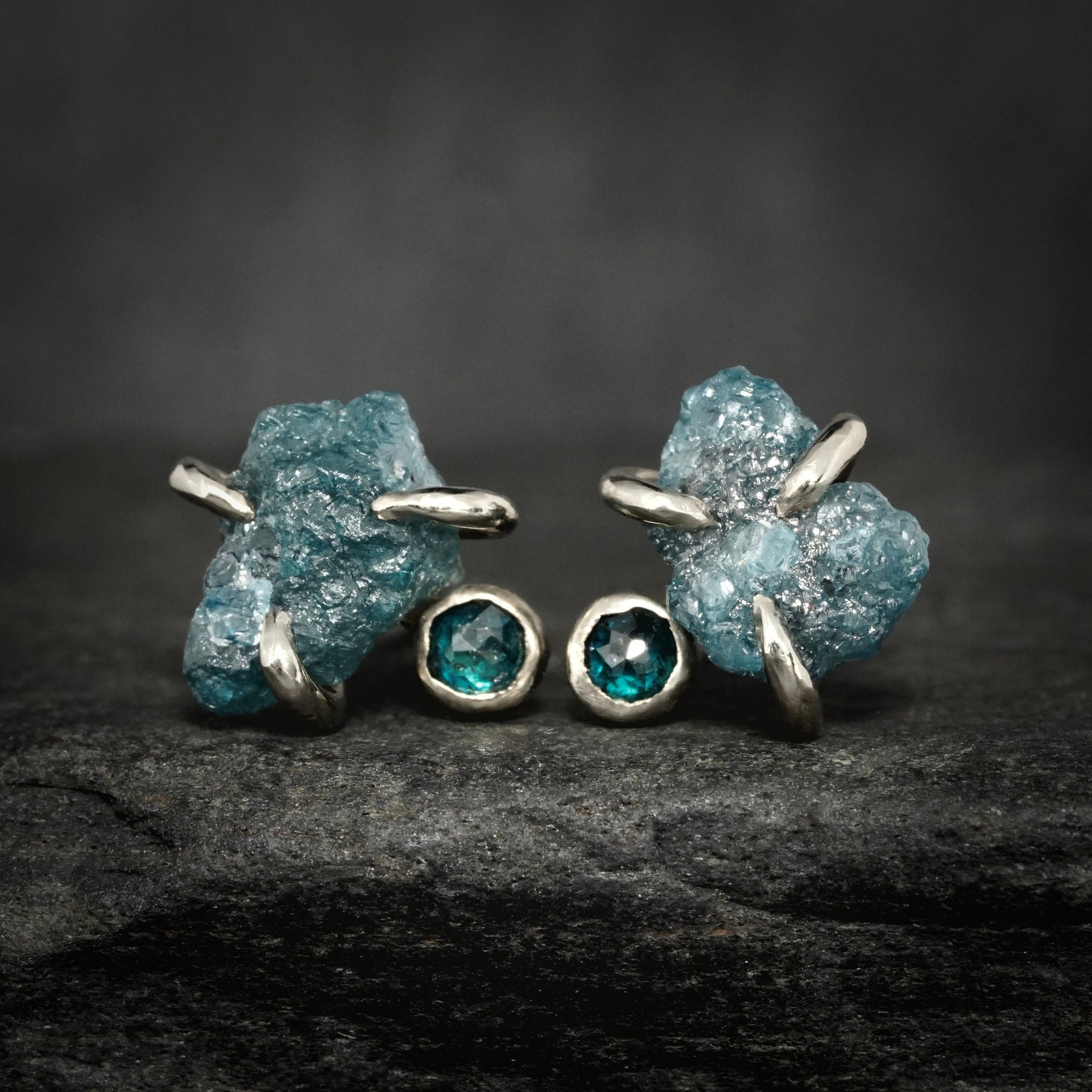 Organic Rustic Raw Rough Blue Diamond Stud Earrings // Blue Diamond Studs // Diamond Stud Earrings // Raw Diamond Studs // Raw Diamond Studs