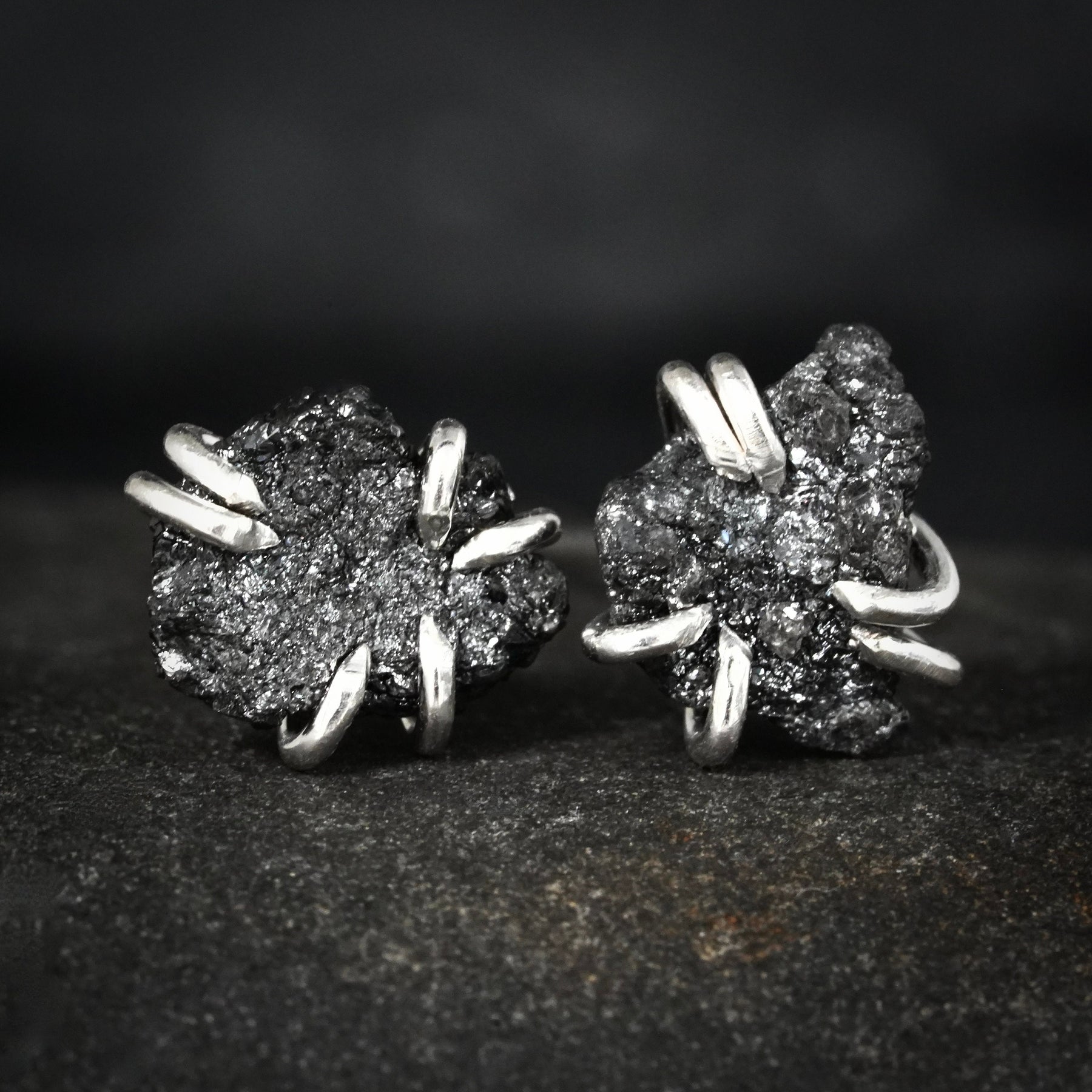 Raw Black Diamond Stud Earrings