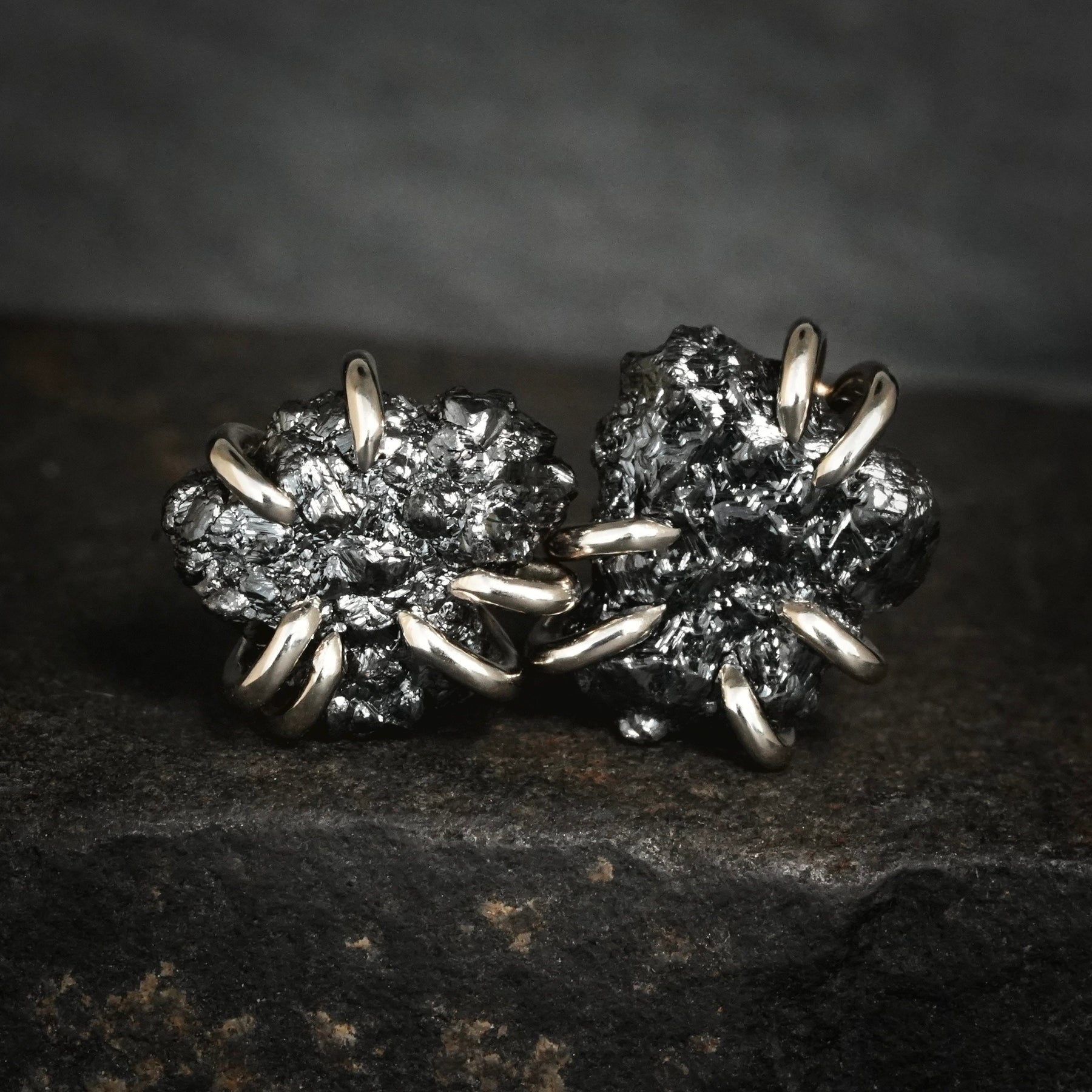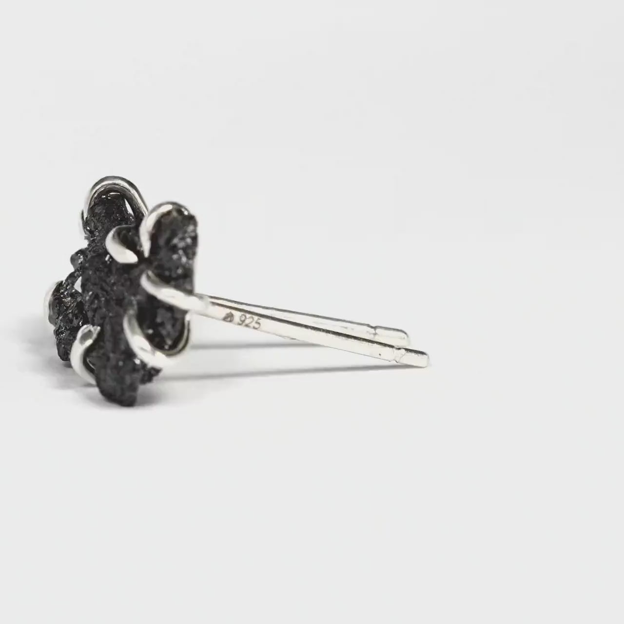 This listing is for one pair of raw black Diamond earrings. Pictured earrings are in 925 sterling silver and 14k / 585 white gold.