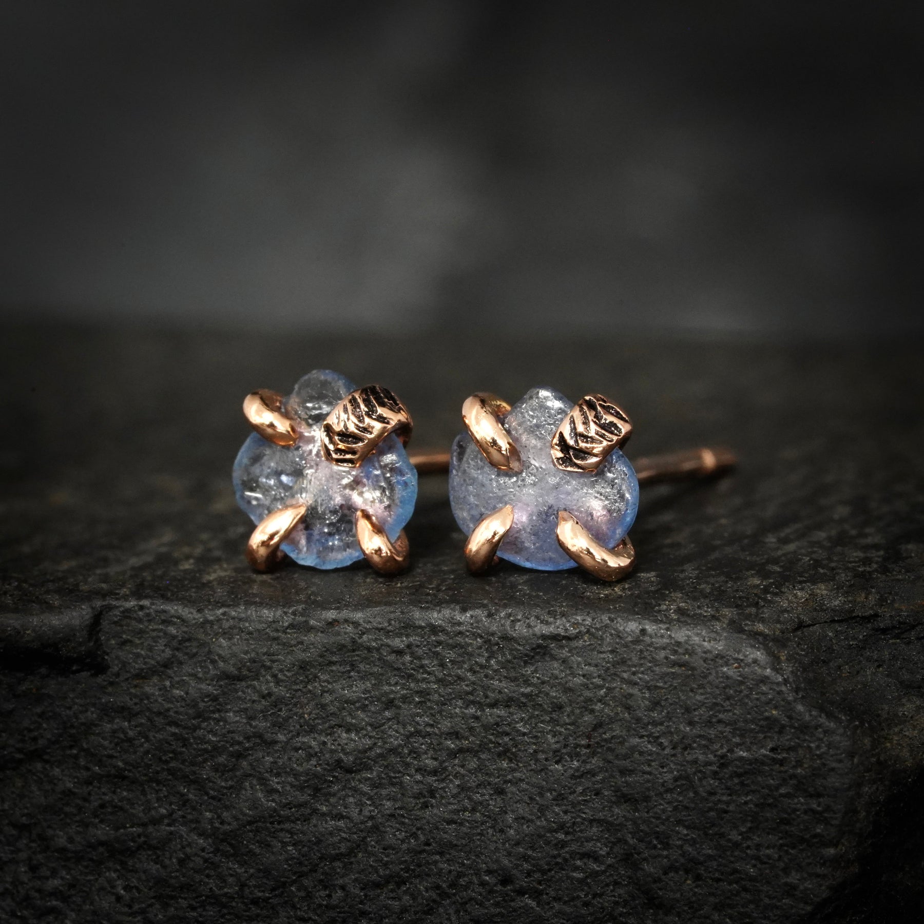 This listing is for one pair of raw blue Montana Sapphire studs. Pictured earrings are in 14k rose gold.