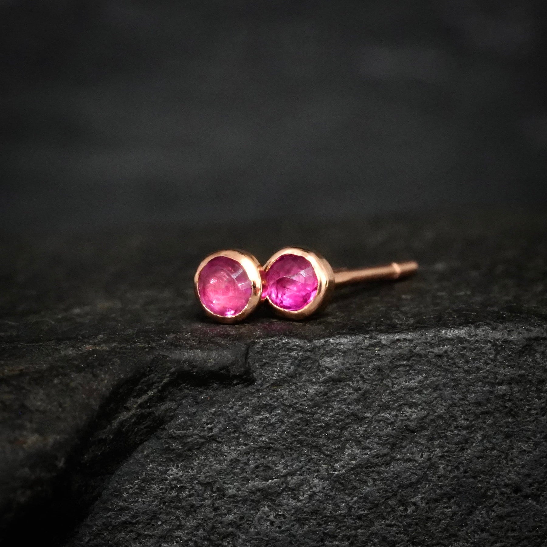 This listing is for one pair of tiny Ruby earrings. Pictured earrings are in 14k rose gold.