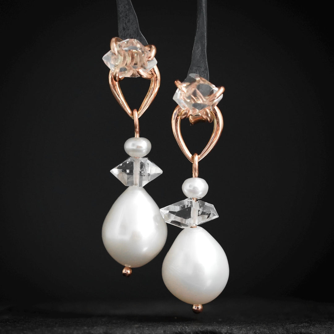 This listing is for one pair of Pearl and Herkimer earrings. Pictured earrings are in 14k rose gold.
