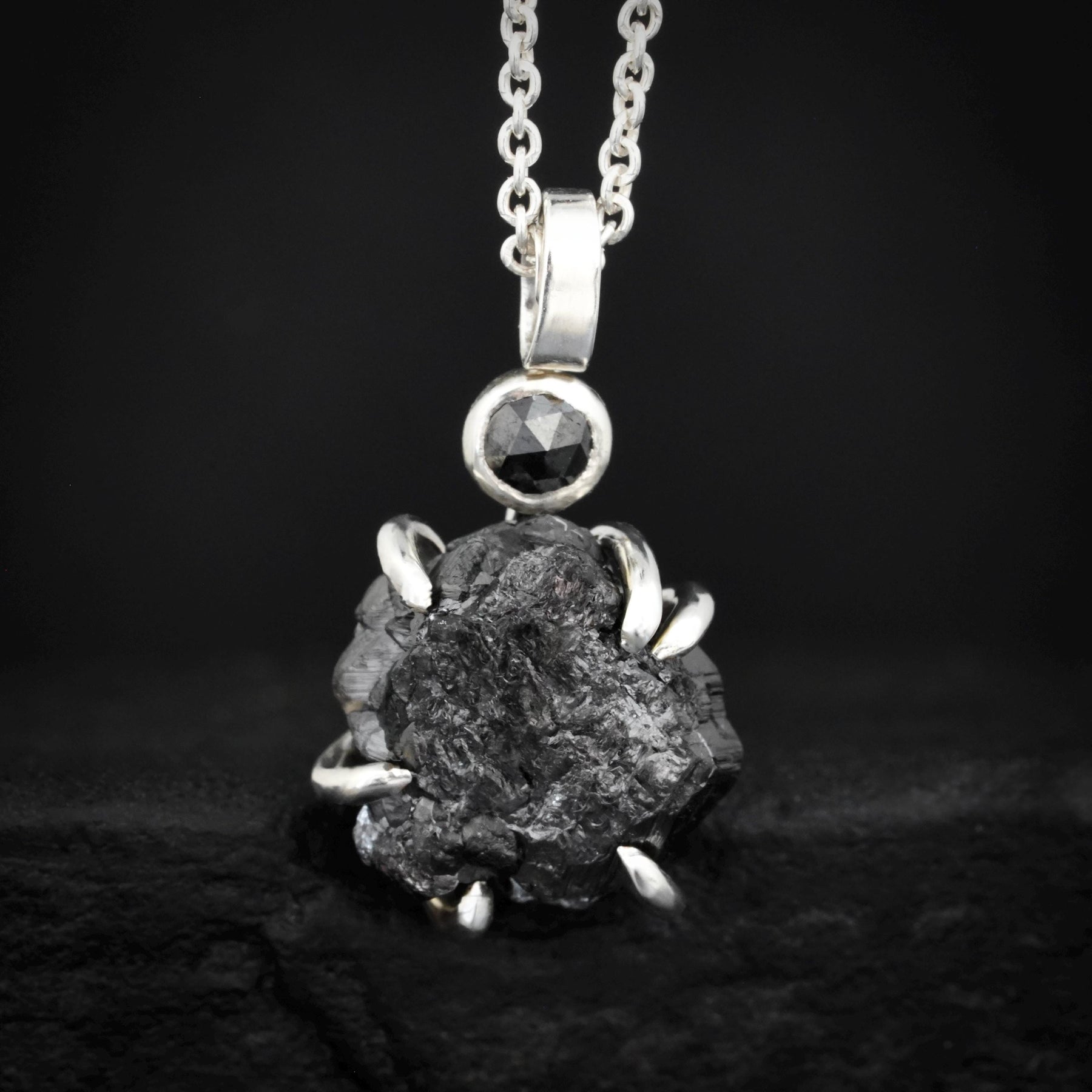 Rustic Raw Black Diamond Necklace // Black Raw Diamond Necklace // Black Diamond Necklace // Rough Black Diamond Necklace // Gold Diamond Necklace