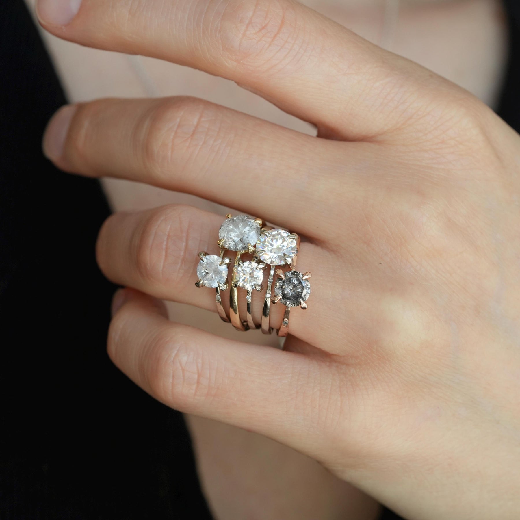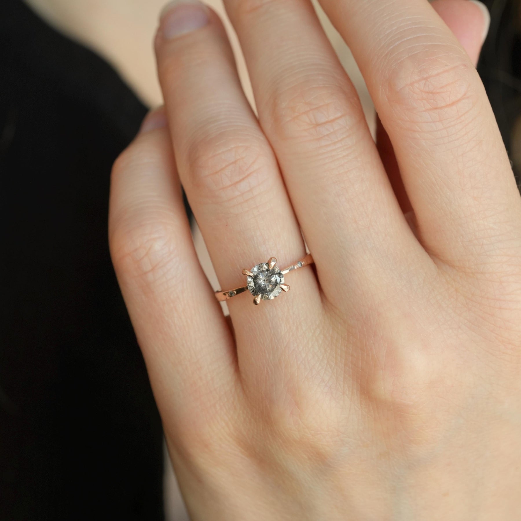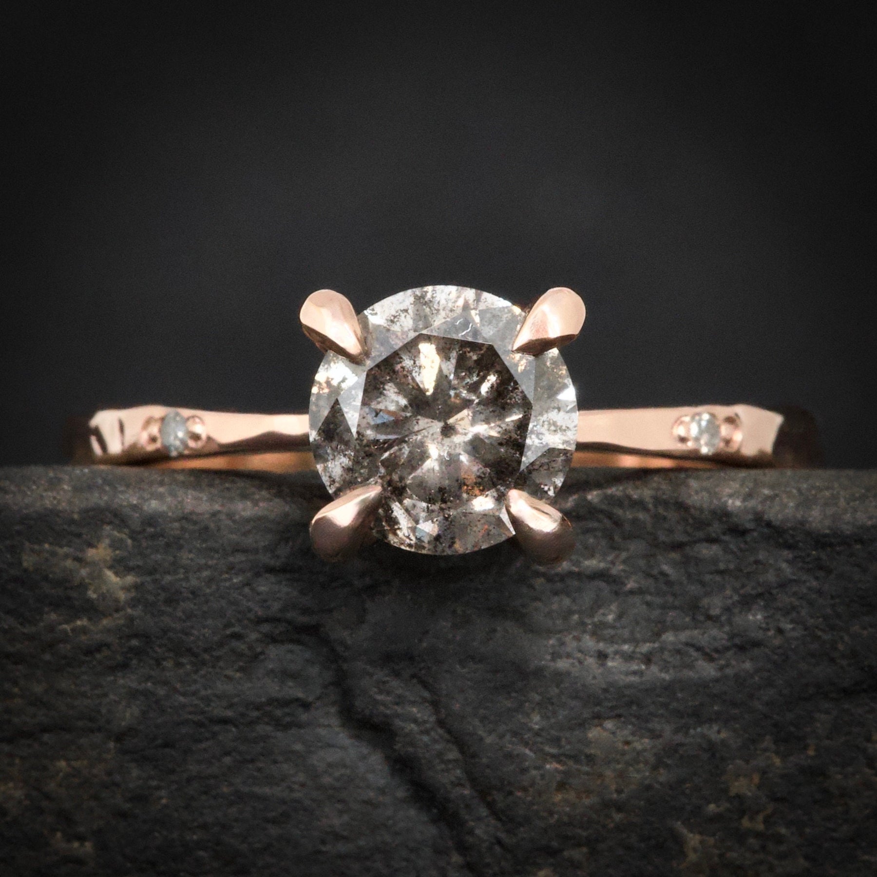 Galaxy Diamond Ring: RTS 14k Solid Rose Gold Round Brilliant Cut Prong Set Grey Salt and Pepper Diamond Ring in US size 5.25