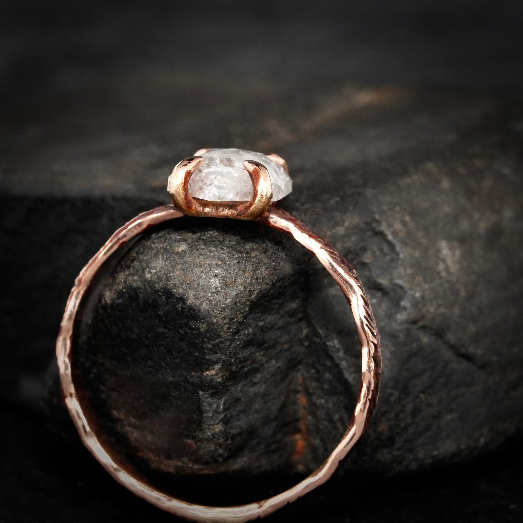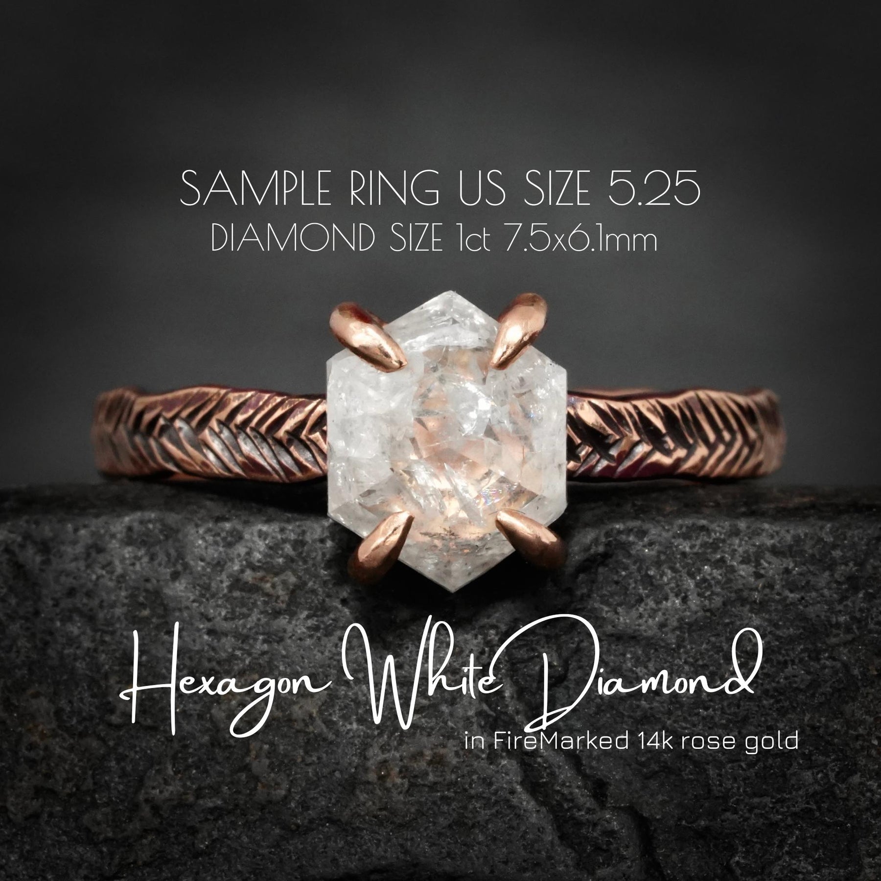 Hexagon Diamond Ring: RTS Solid 14k Rose Gold Natural 4 Prong Set Hexagon Shape White Salt and Pepper Diamond Ring in US size 5.25