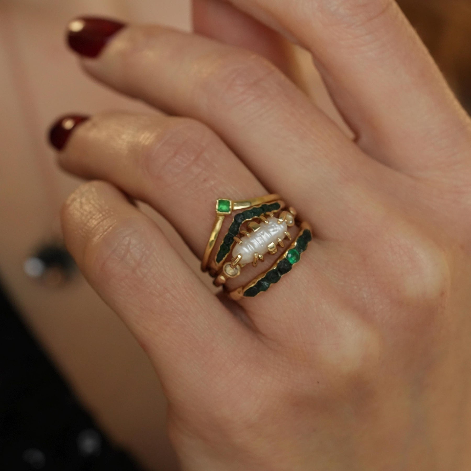 Pearl and Diamond Ring: RTS 14k Solid Yellow Gold 12 Prong Set White Oval Baroque Pearl and Clear Round Diamond Ring in US size 5.75