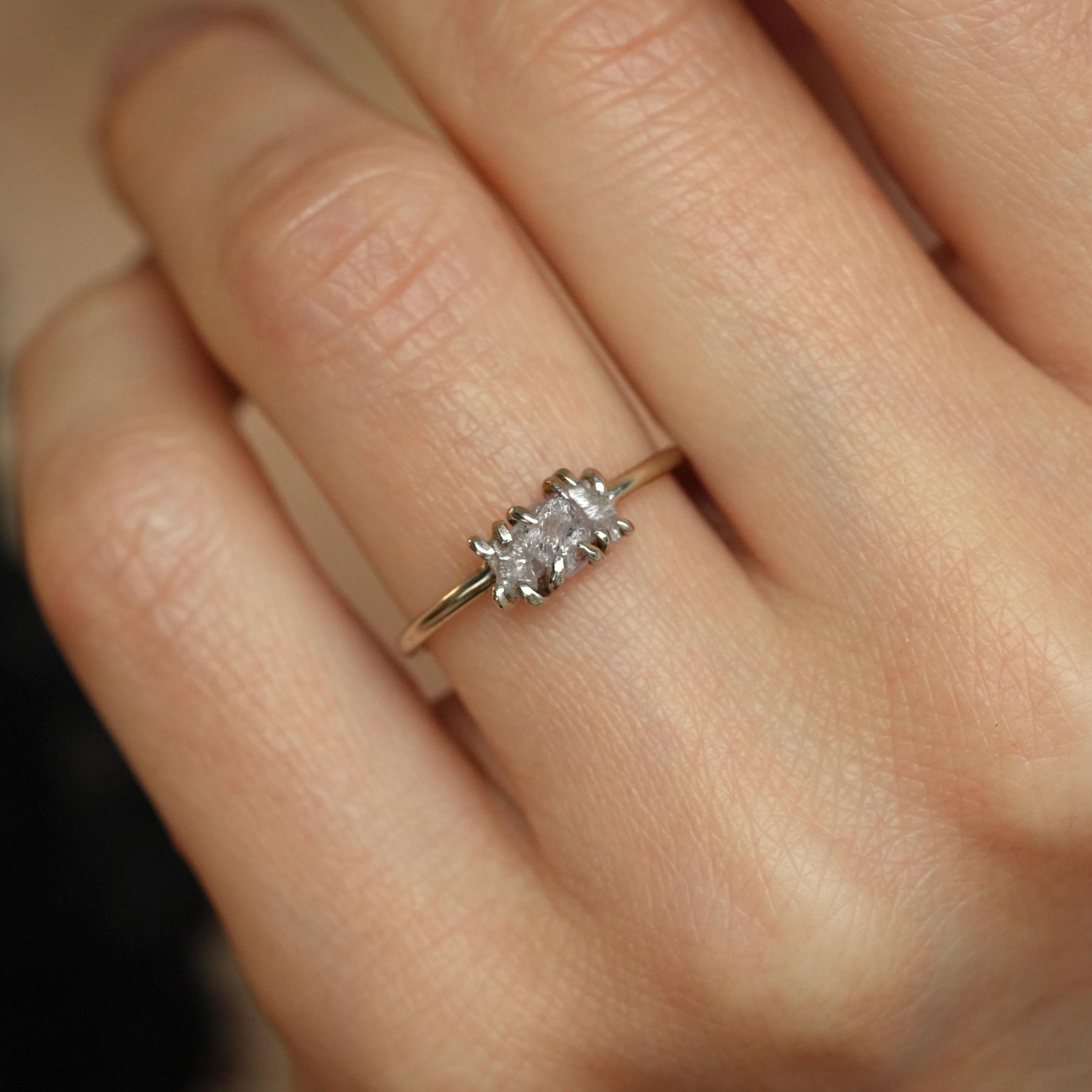 Pink Diamond Ring: RTS 14k Solid White Gold Raw Rough Uncut Natural Greyish Pink Diamond Engagement Promise Ring in US size 5.5
