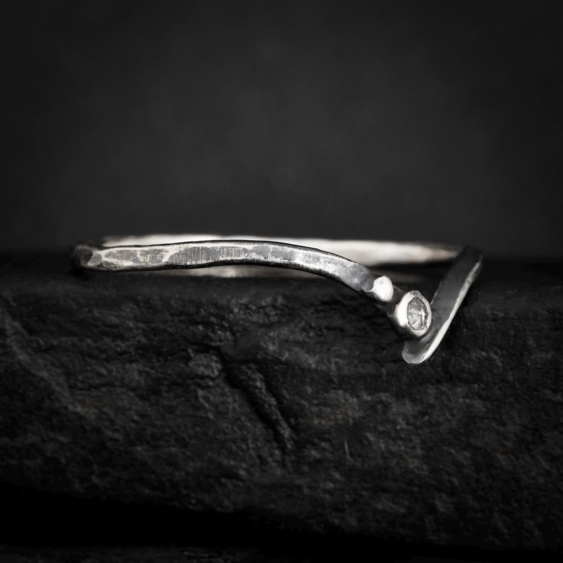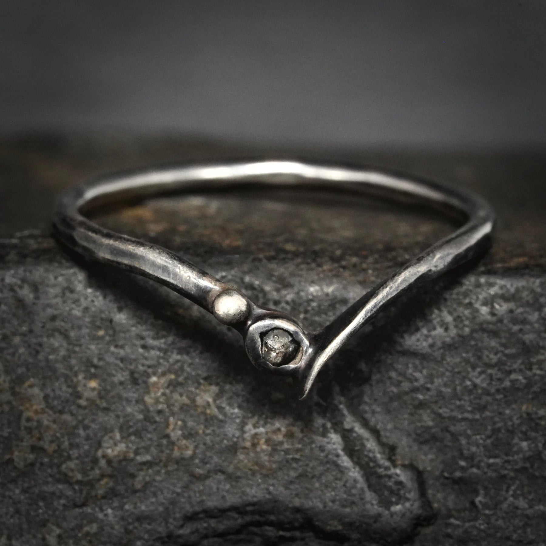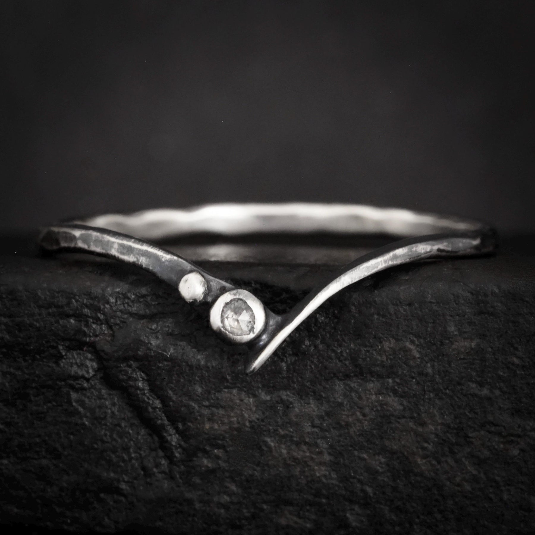 Galaxy Diamond Wave Ring // Rustic Organic Alternative Grey Gray Galaxy Salt and Pepper Natural Diamond Wave Chevron Nesting Wedding Band Ring
